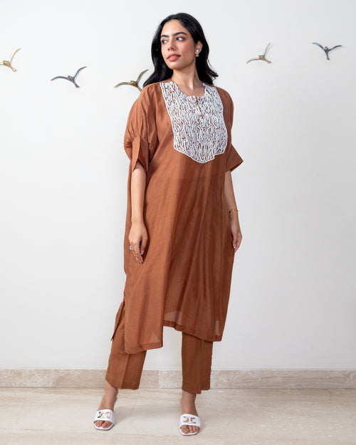 Lagom Beige Cotton Silk Tunic Set With Applique Embroidery