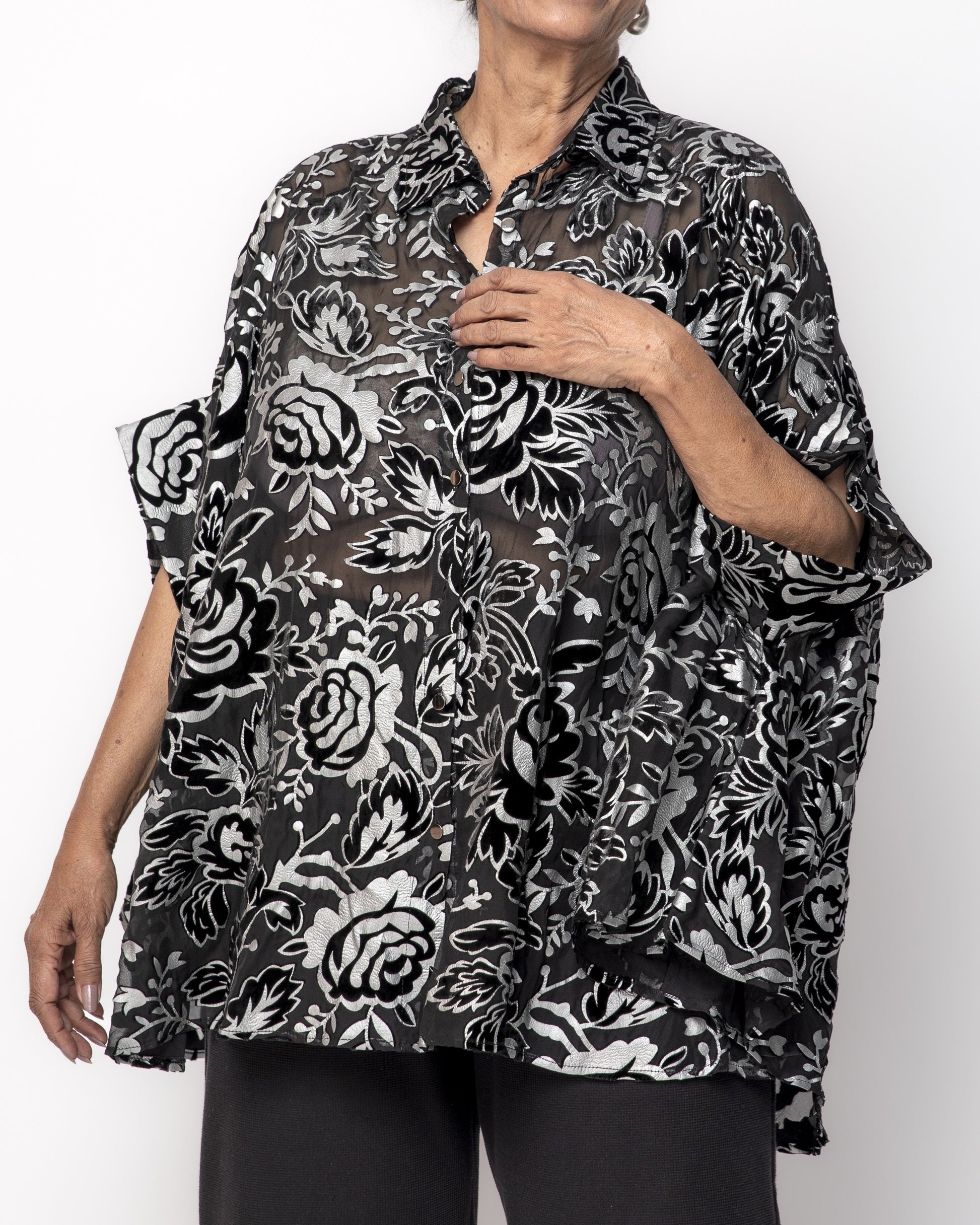 Devoré Velvet Cape Shirt Black